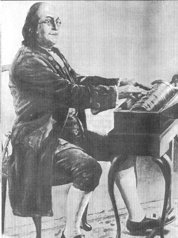 Inspired by water-filled musical glasses, Benjamin Franklin constructed