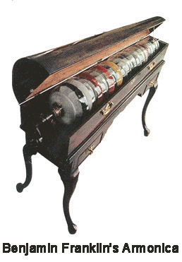 The glass armonica, invented by Benjamin Franklin in 1761, was demonstrated to Ludwig van Beethoven and Wolfgang