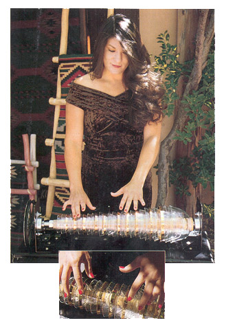 Garcia's instrument — lead-free — has 45 tuned crystal bowls of different sizes, which are threaded on a shaft that is turned by a motor. She touches the turning edges of the quartz bowls with wet fingers to create a mes- merizing sound, much like rubbing a wet finger on a wine glass filled with water.